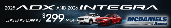 ** Based on current year EPA mileage ratings. Use for comparison purposes only. Your actual mileage will vary, depending on how you drive and maintain your vehicle, driving conditions, battery pack age/condition (hybrid models only) and other factors. Pricing may require financing or leasing through Acura Financial Services. McDaniels is not responsible for any price discrepancies, statements of condition, or incorrect equipment listed on any vehicle. Pricing excludes $539.00 closing fee, sales tax (IMF), registration, and title fees. Not all offers may be combined with special APR offers. $0 down payment required for advertised a.p.r offers unless otherwise noted. No security deposit required unless otherwise noted. All offers with approved credit. All terms applicable to internet price. See dealer for details. We thank you for your business and appreciate the following and only accepted methods of payment: Certified Funds, cash, financing or leasing options. We do not accept Credit Cards for payment of purchasing your vehicle.
