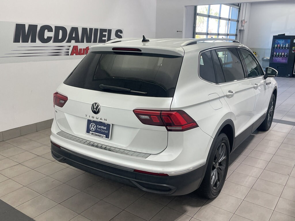 This vehicle has automated speed control that adjusts to maintain a safe following distance, enhancing highway driving convenience. This vehicle offers Android Auto for seamless smartphone integration. This model offers Apple CarPlay for seamless connectivity. This vehicle offers Automatic Climate Control for personalized comfort. It has an automatic transmission. See what's behind you with the back up camera on this mid-size suv. Good News! This certified CARFAX 1-owner vehicle has only had one owner before you. The Volkswagen Tiguan has a clean CARFAX vehicle history report. This model is a manufacturer certified pre-owned vehicle. Maintaining a stable interior temperature in this vehicle is easy with the climate control system. The Volkswagen Tiguan features cruise control for long trips. Electronic Stability Control is one of many advanced safety features on this Volkswagen Tiguan. It has a 4 Cyl, 2.0L high output engine. This unit's Forward Collision Warning system alerts the driver to potential front-end collisions, enhancing safety. Front wheel drive on this unit gives you better traction and better fuel economy. Enjoy the tried and true gasoline engine in this mid-size suv. This Volkswagen Tiguan features a hands-free Bluetooth phone system. The vehicle features a HomeLink System. The leather seats in the vehicle are a must for buyers looking for comfort, durability, and style. With the adjustable lumbar support in this 2023 Volkswagen Tiguan your back will love you. This mid-sized SUV is perfect for your next adventure. The vehicle looks aggressive with a streamlined rear spoiler. Start this model from inside with remote start. This unit embodies class and sophistication with its refined white exterior.