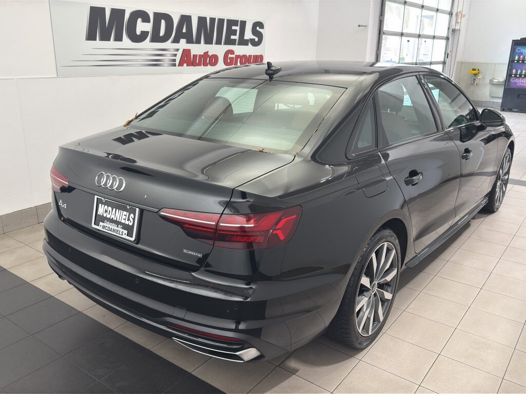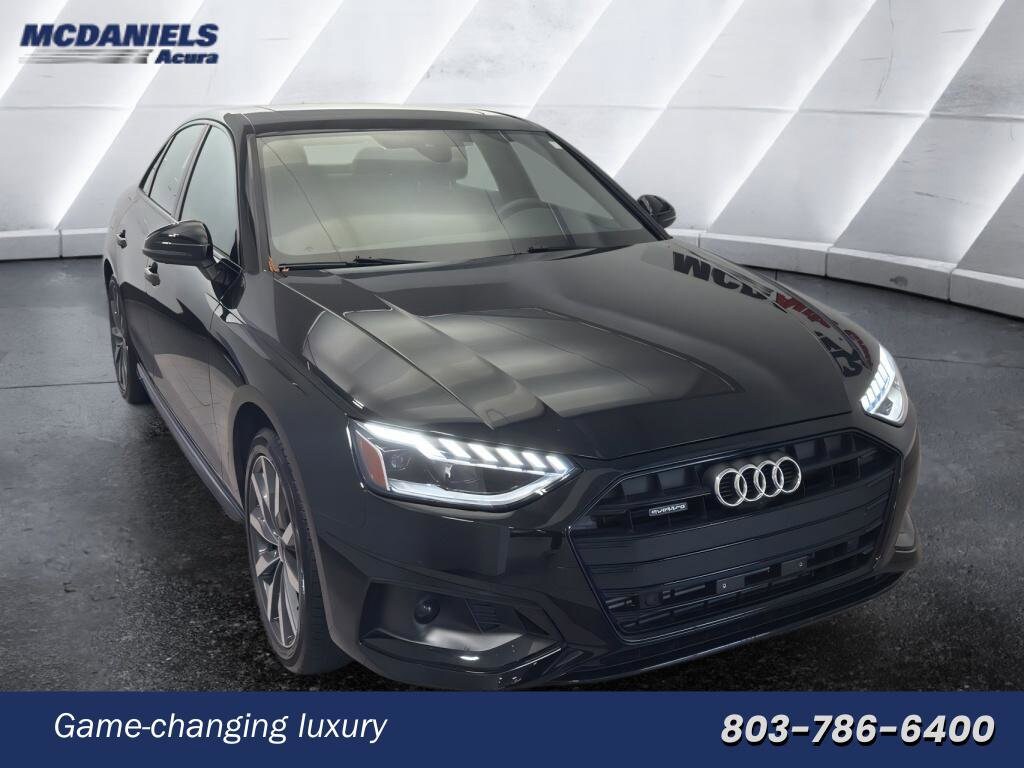 The vehicle has auto-adjust speed for safe following. Conquer any rainy, snowy, or icy road conditions this winter with the all wheel drive system on the vehicle. The Audi A4 comes equipped with Android Auto for seamless smartphone integration on the road. This unit offers Apple CarPlay for seamless connectivity. This model offers Automatic Climate Control for personalized comfort. The high efficiency automatic transmission shifts smoothly and allows you to relax while driving. See what's behind you with the back up camera on this small car. It is painted with a sleek and sophisticated black color. This vehicle is a certified CARFAX 1-owner. Our dealership has already run the CARFAX report and it is clean. A clean CARFAX is a great asset for resale value in the future. Maintaining a stable interior temperature in this Audi A4 is easy with the climate control system. It features cruise control for long trips. Electronic Stability Control is one of many advanced safety features on the vehicle. This vehicle has a 4 Cyl, 2.0L high output engine. This vehicle is equipped with a gasoline engine. This model features a hands-free Bluetooth phone system. This 2023 Audi A4 is pure luxury with a heated steering wheel. The leather seats in this small car are a must for buyers looking for comfort, durability, and style. With the adjustable lumbar support in this small car your back will love you. The state of the art park assist system will guide you easily into any spot. This small car is easy to park. The Audi A4 is equipped with the latest generation of XM/Sirius Radio.