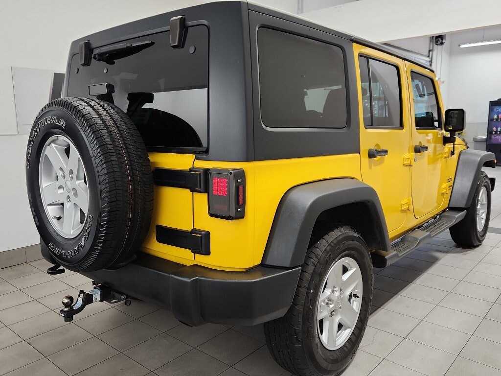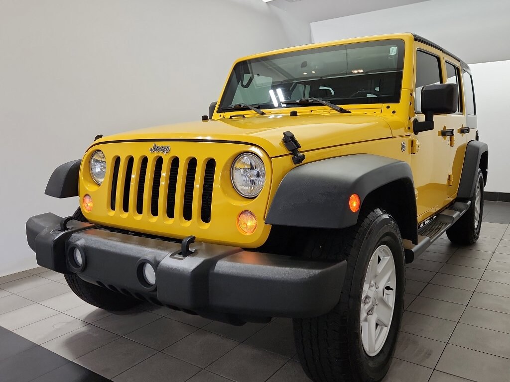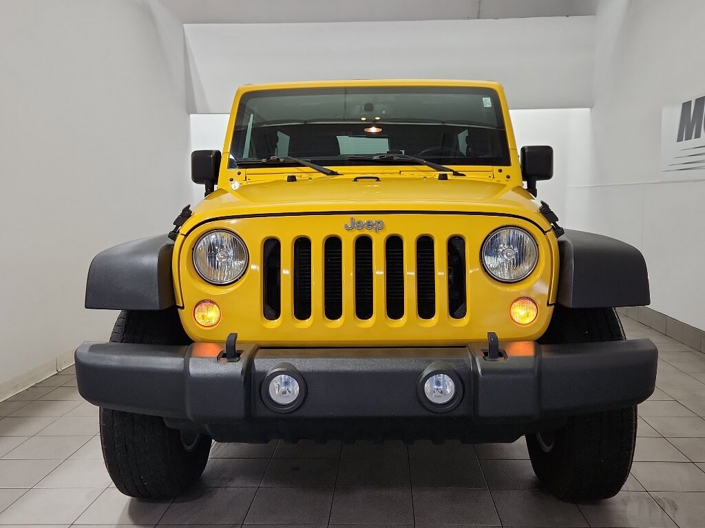 When you encounter slick or muddy roads, you can engage the four wheel drive on this Jeep Wrangler and drive with confidence. This Jeep Wrangler has an automatic transmission. Our dealership has already run the CARFAX report and it is clean. A clean CARFAX is a great asset for resale value in the future. Set the temperature exactly where you are most comfortable in the Jeep Wrangler. The fan speed and temperature will automatically adjust to maintain your preferred zone climate. This unit features cruise control for long trips. Electronic Stability Control is one of many advanced safety features on the Jeep Wrangler. It has a V6, 3.6L high output engine. The fog lights cut through the weather so you can see what's ahead. The Jeep Wrangler is equipped with a gasoline engine. Bluetooth technology is built into this mid-size suv, keeping your hands on the steering wheel and your focus on the road. This mid-size suv has heated side mirrors to keep your vision clear in winter weather. Quickly unlock the vehicle with keyless entry. The spacious cabin accommodates your family and friends in comfort. Take it to the mountains or the beach. this Jeep Wrangler can handle it all. The Jeep Wrangler has satellite radio capabilities. This model exudes confidence with an alluring deep yellow exterior.